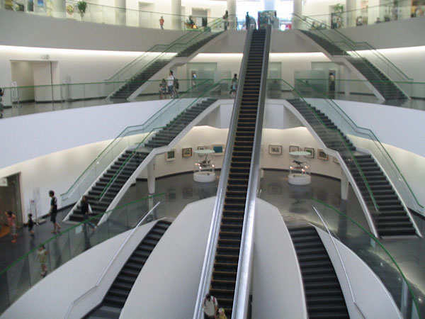 入口をはいるといきなり長いエスカレーターで地下1階まで下りていきます。