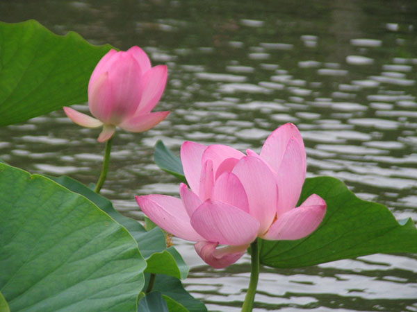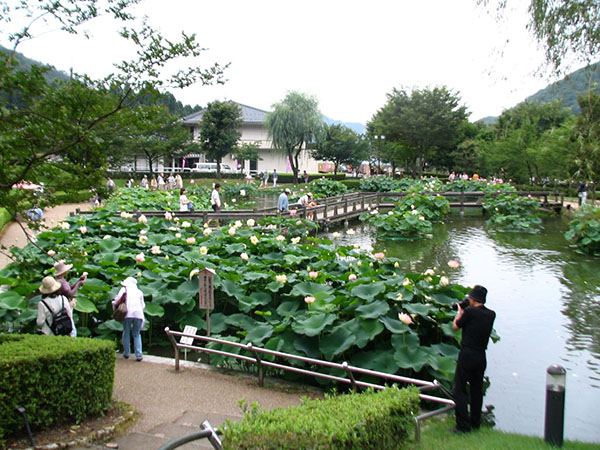 とにかく広大な公園に世界各地の色とりどりの花はすが咲き乱れていて、その清楚な姿に見とれました。普段は仏事の花という認識しかないのですが、これだけ咲きそろうと圧倒されます。葉っぱは傘ほどに大きくその中に咲く姿には気品さえ漂っています。