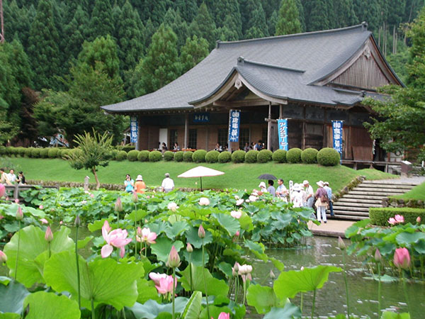 公園内をゆっくり巡り歩いていくと、鑑賞池を見渡すことのできるところに「瓜生の舘(うりゅうのやかた)」があります。南北朝時代の武家屋敷を再現したこの建物は、普段は花はすに関する資料館ですが、まつり期間中はお食事処として開放されており、落ち着いた雰囲気の中で、くつろぐことができます。